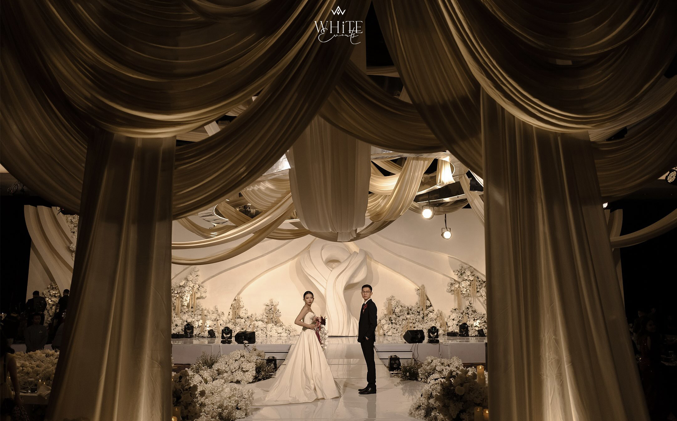 Tại White Events, chúng tôi chuyên thiết kế và trang trí tiệc cưới – nơi mỗi chi tiết đều được chăm chút để phản chiếu trọn vẹn phong cách và câu chuyện tình yêu của từng cặp đôi